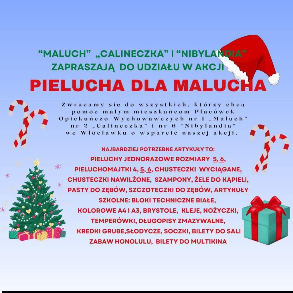 Akcja „Pielucha dla Malucha” 12 stycznia, 202619 stycznia, 2026 • Przedszkole36 Przypominamy o kończącej się akcji „Pielucha dla Malucha”. Akcja trwa do 26 stycznia 2026r. Zachęcamy do wsparcia tej pięknej inicjatywy. „Pielucha dla Malucha”