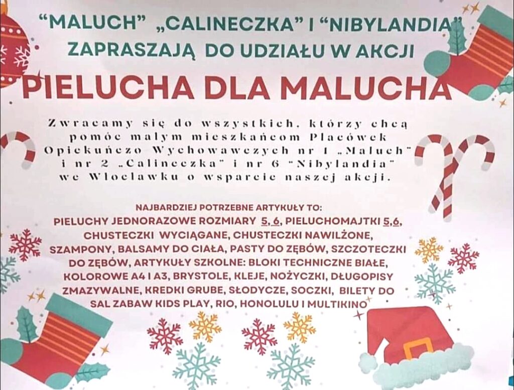 Zwracamy się do wszystkich, którzy chcą pomóc małym mieszkańcom Placówek Opiekuńczo-Wychowawczych nr 1 – „Maluch”, nr 2 – „Calineczka” i nr 6 „Nibylandia” we Włocławku o wsparcie naszej akcji.