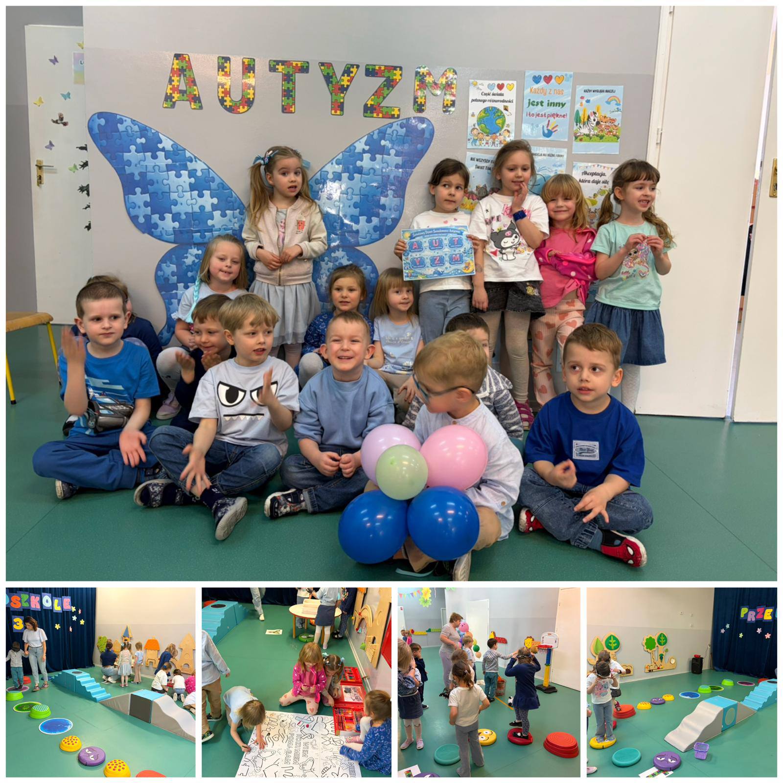 10 kwietnia 2026r. w naszym przedszkolu obchodziliśmy Dzień Autyzmu. Wszyscy świeciliśmy na niebiesko. Dzieci wykonywały różnorodne zadania, które pokazały jak wygląda autyzm.