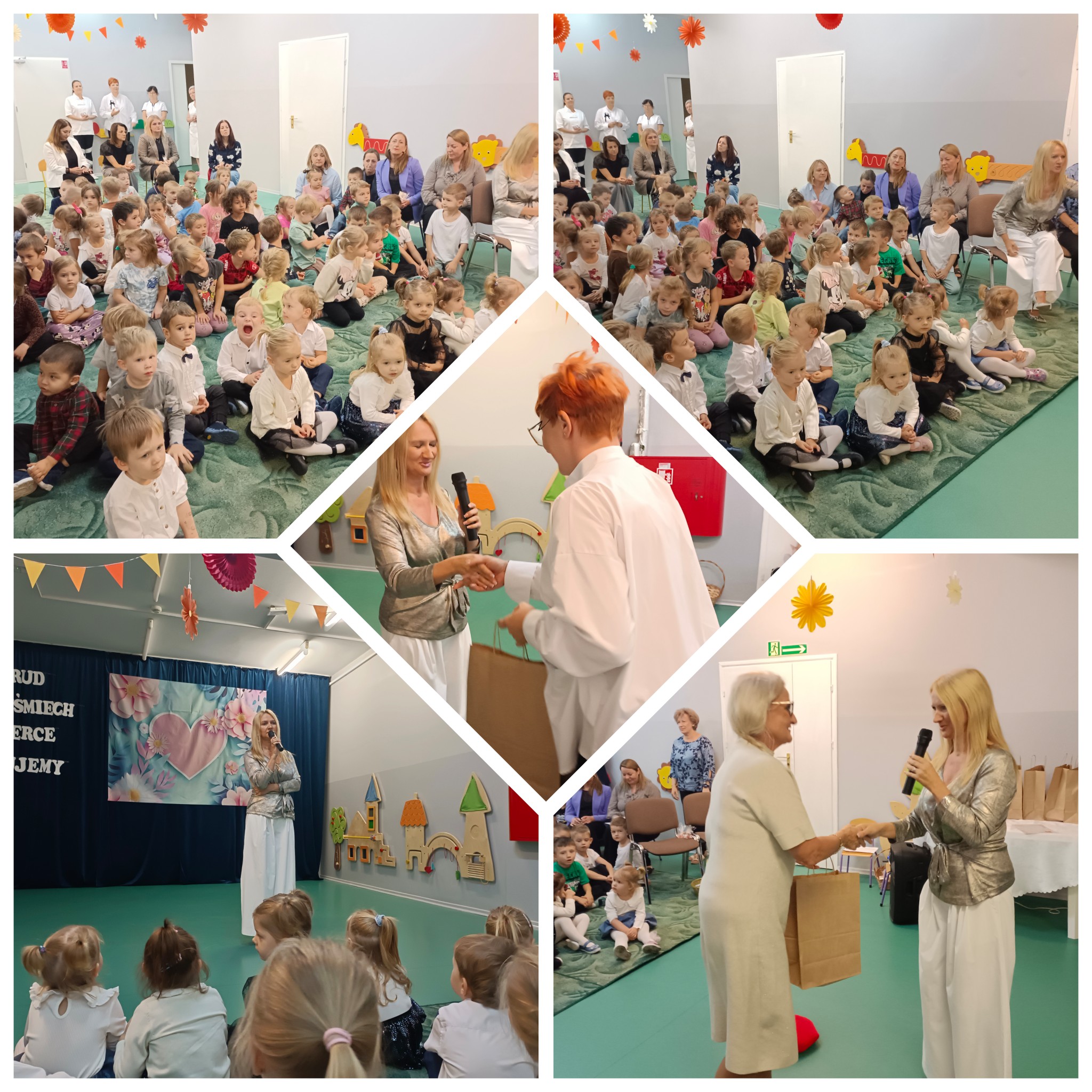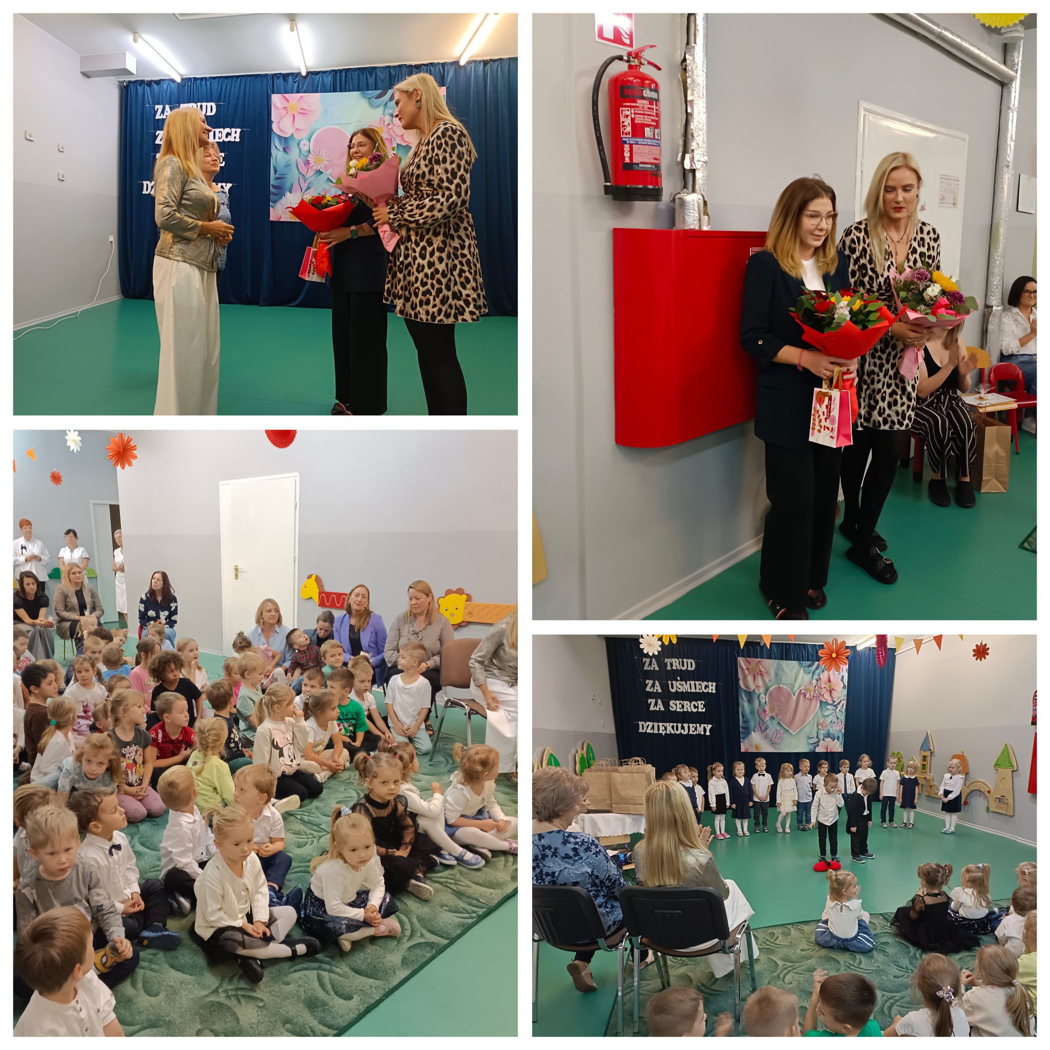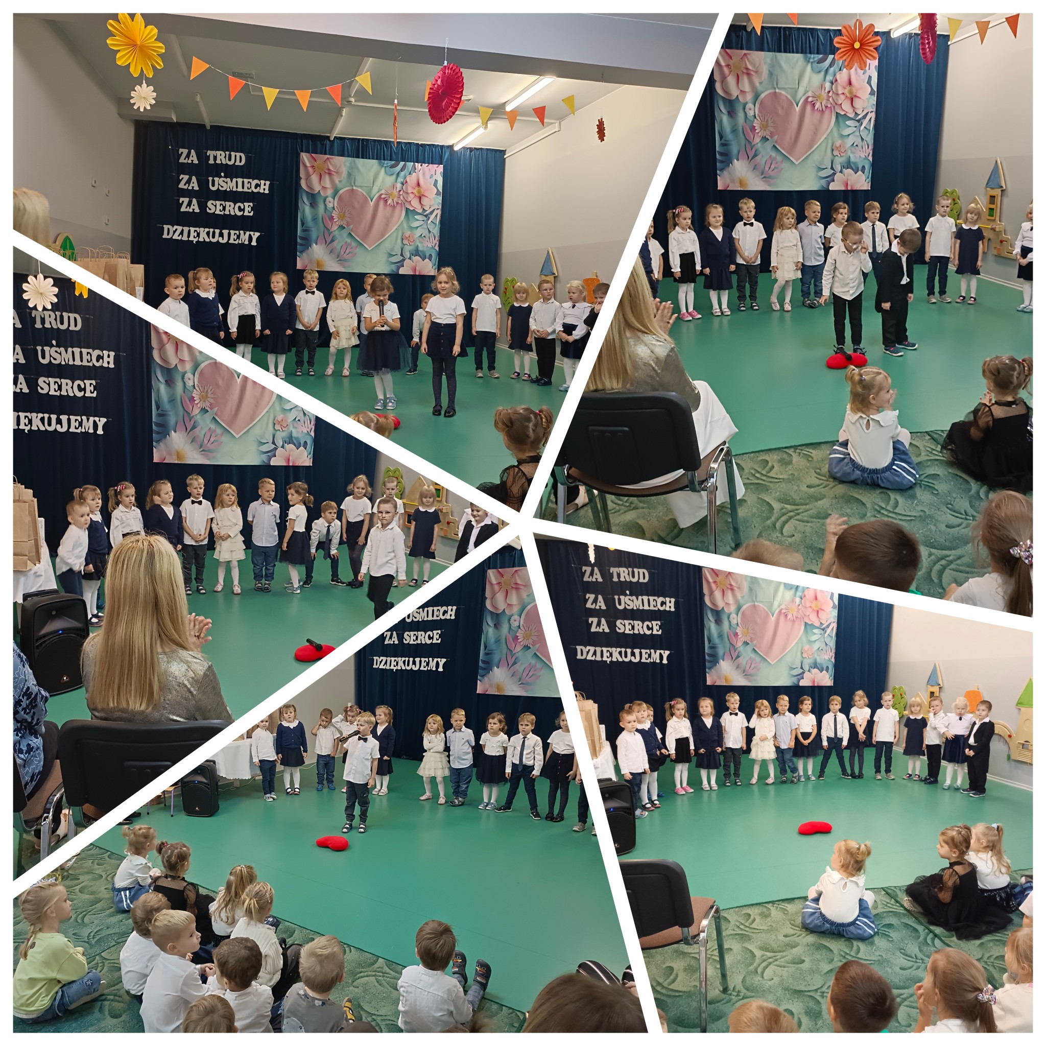 W Dniu Edukacji Narodowej grupa Pszczółki przygotowała krótki występ dla wszystkich pracowników Naszego przedszkola. Jest to wyjątkowy dzień dla wszystkich, którzy na co dzień wkładają całe serce w pracę z najmłodszymi. Dodatkowe pragniemy poinformować, że w tym roku Nagrodę Prezydenta otrzymała Pani Bernarda. Serdeczne gratulacje. Jeszcze raz Wszystkiego najlepszego.