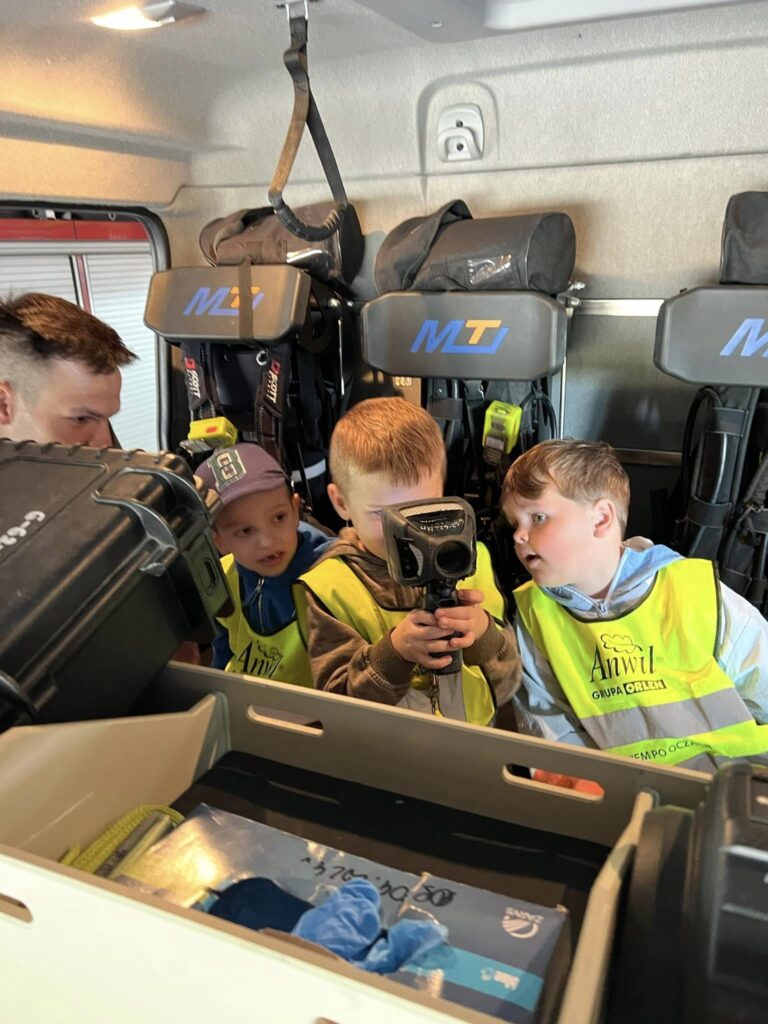 Z okazji Dnia Strażaka grupa 5- latków wybrała się do Komedy Miejskiej Państwowej Straży Pożarnej przy ulicy Rolnej , aby dowiedzieć się więcej na temat pracy zawodowej strażaka. Bardzo dziękujemy za miłe spotkanie, za przybliżenie nam swojej pracy zawodowej oraz demonstrację sprzętu strażackiego.