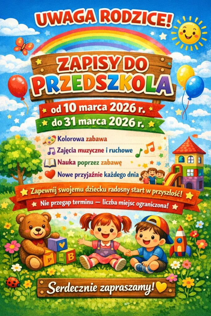 Dołącz do naszej przedszkolnej rodziny i pozwól swojemu dziecku rozwinąć skrzydła! Zapraszamy wszystkich do składania wniosków do zobaczenia.
