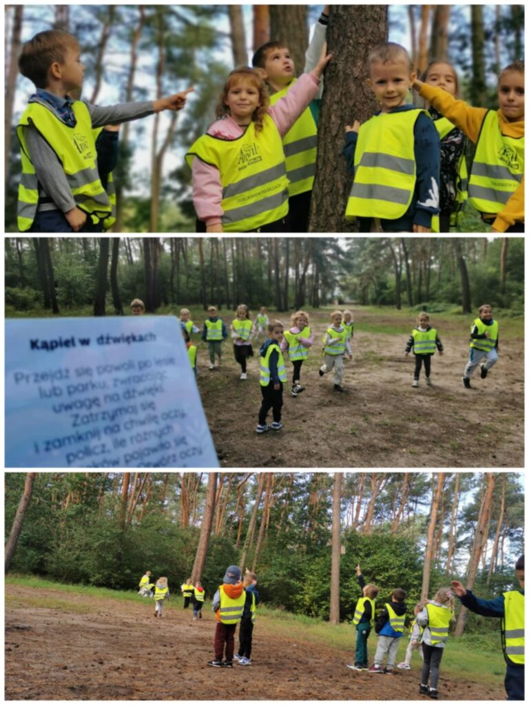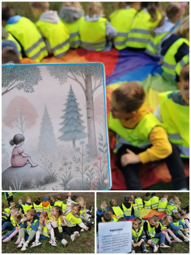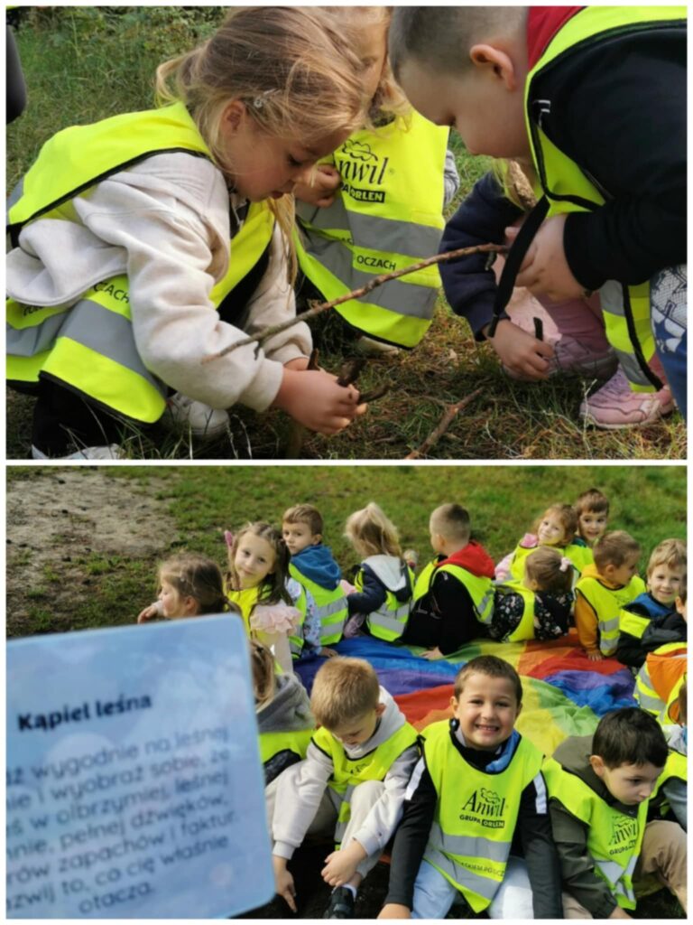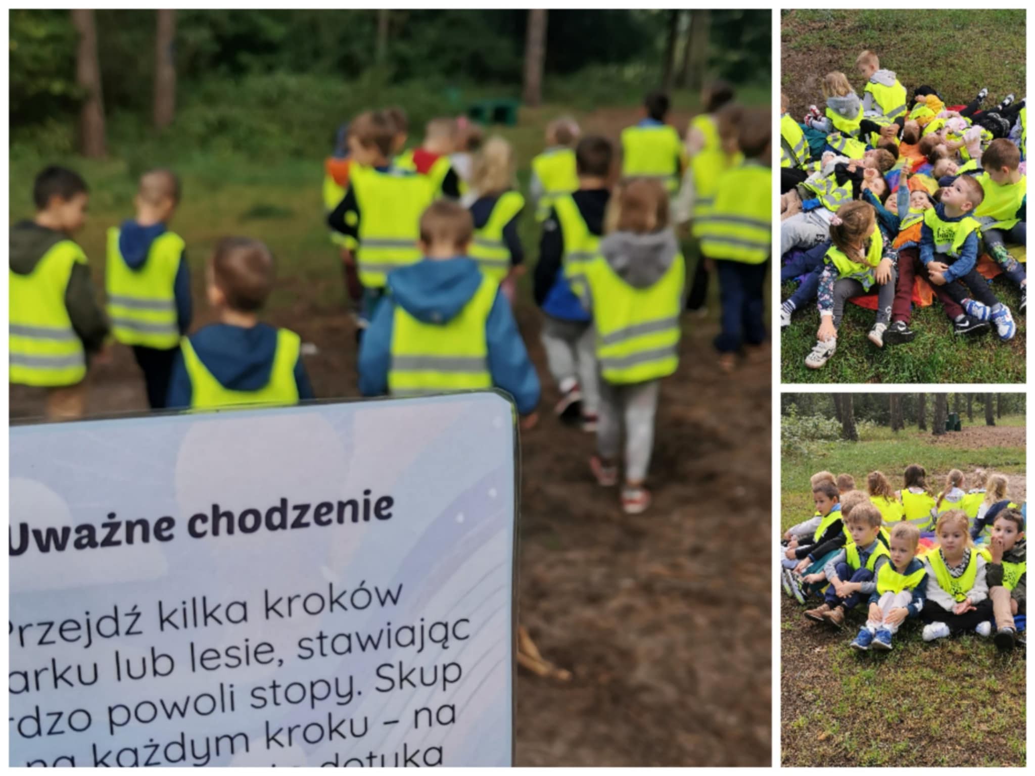 5 latki przywitały pierwszy dzień jesieni w lesie. To była również świetna okazja do tego, aby poćwiczyć uważność, koncentrację i skupienie uwagi.