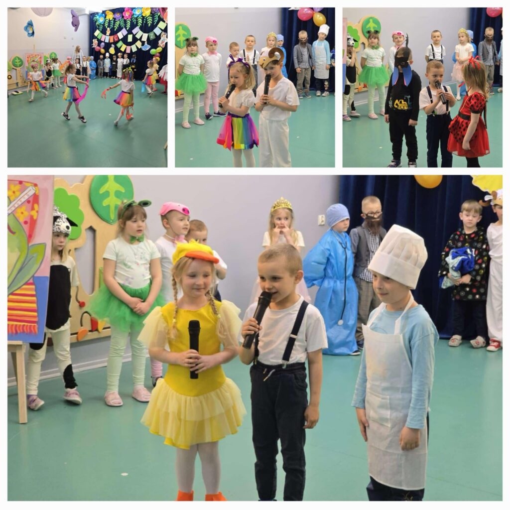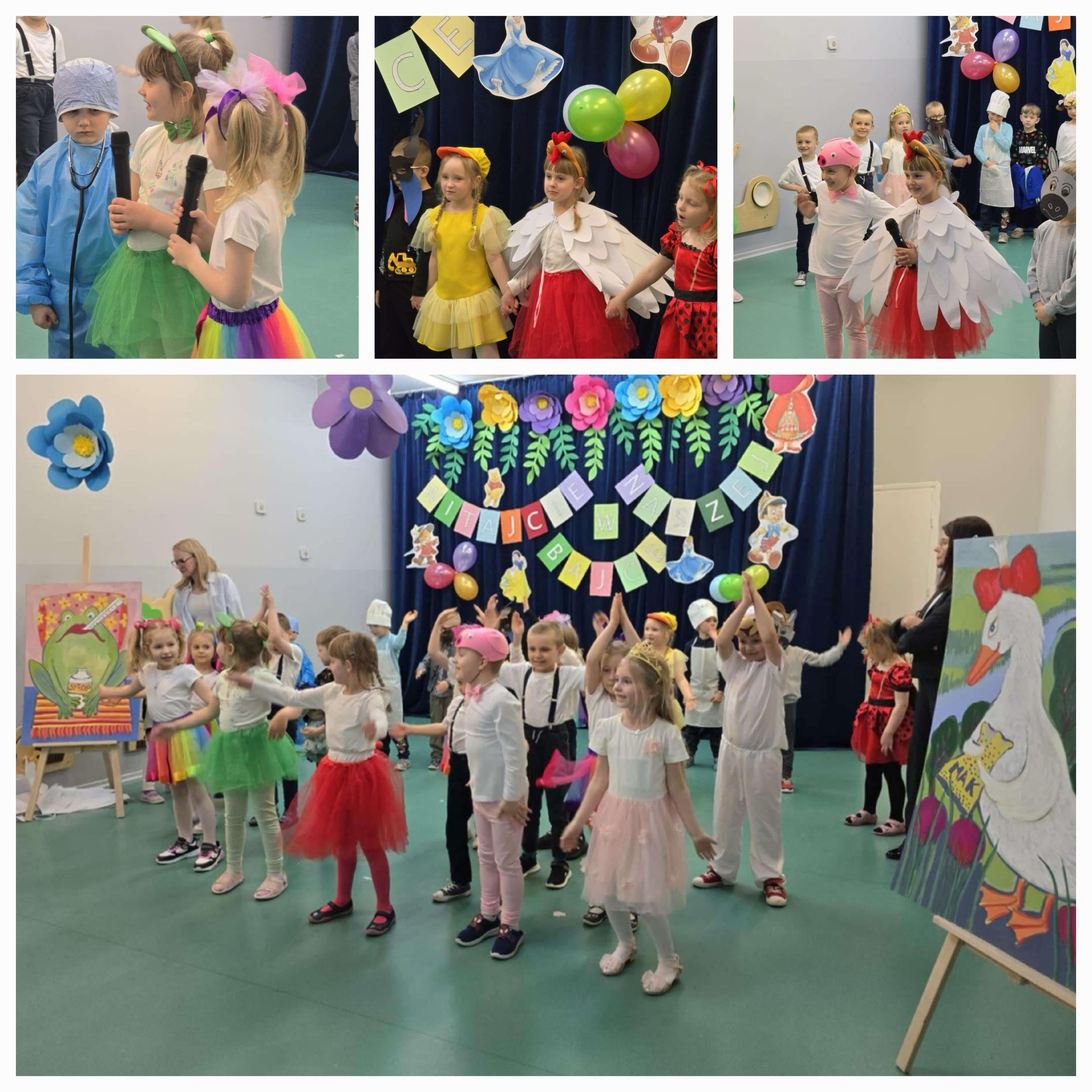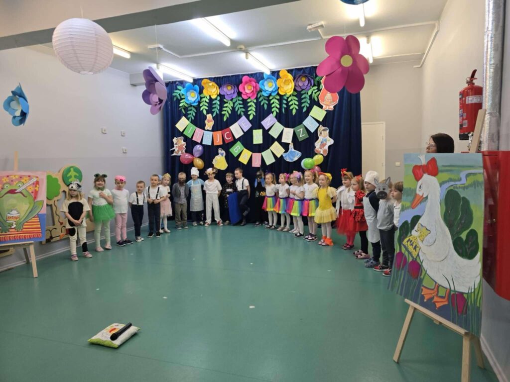 Dzieci z grupy Misie przygotowały program artystyczny pt. „Witajcie w naszej bajce”. Przeniosły nas do bogatego świata dziecięcych opowieści inspirowanych filmem „Akademia Pana Kleksa” i twórczości Jana Brzechwy. Misie wspaniale zaprezentowały umiejętności aktorskie, taneczne i wokalne występując przed całą społecznością przedszkolną, dziećmi ze Szkoła Podstawowa Nr 23 im. Kardynała Stefana Wyszyńskiego oraz przed rodzicami. Trzydniowe występy dowiodły ogromnej determinacji i wytrwałości małych aktorów czego serdecznie Misiom gratulujemy.