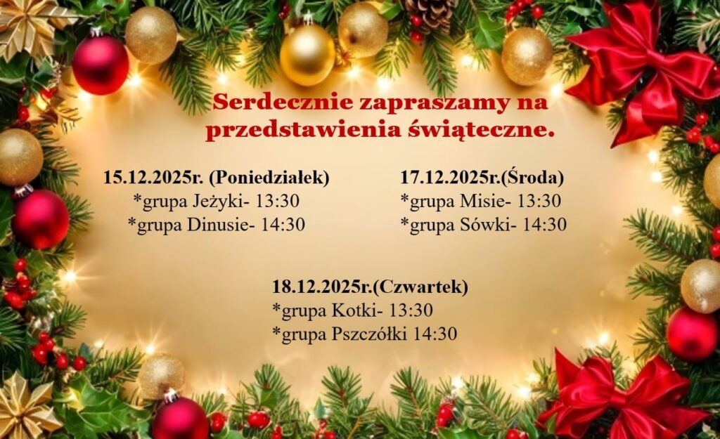 Serdecznie zapraszamy na przedstawienia świąteczne