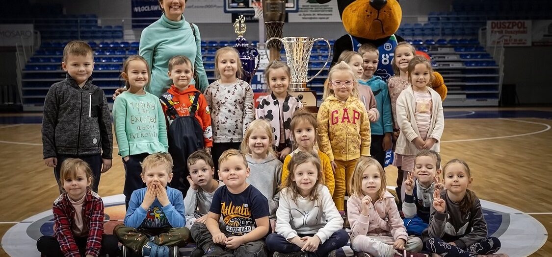 Spotkanie z przedszkolakami w Hali Mistrzów 30 listopada 2023r. Przedszkolaki z grup: 4-latki, 5-latki i 6-latki miały możliwość obejrzenia treningu koszykarzy ANWIL Włocławek, spotkania się ze sportowcami, uzyskania autografów, zwiedzenia szatni zawodników, gdzie przygotowują się do meczów i spędzają przerwy oraz zrobienie sobie pamiątkowych zdjęć. Serdecznie dziękujemy tacie Ady P. za zaproszenie.