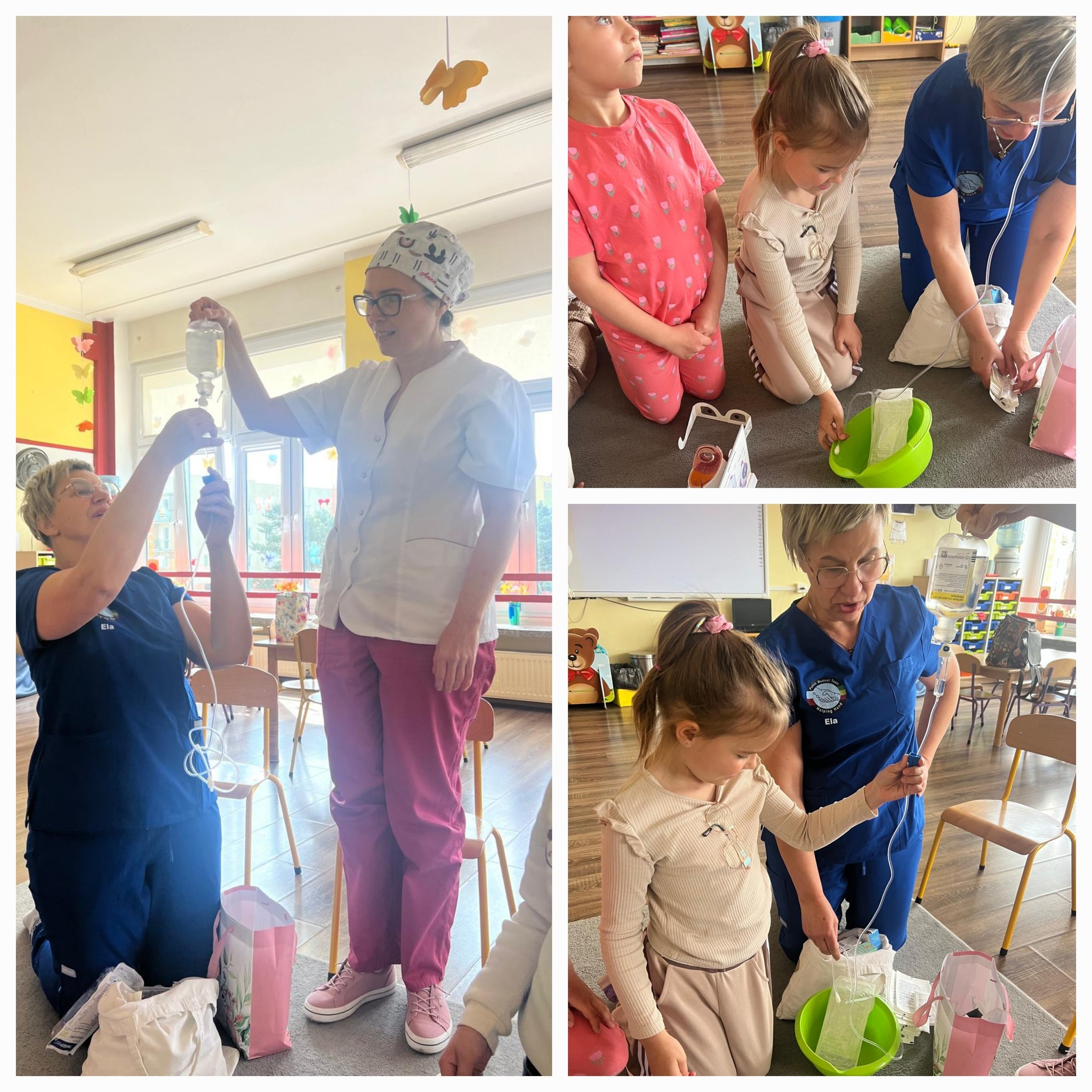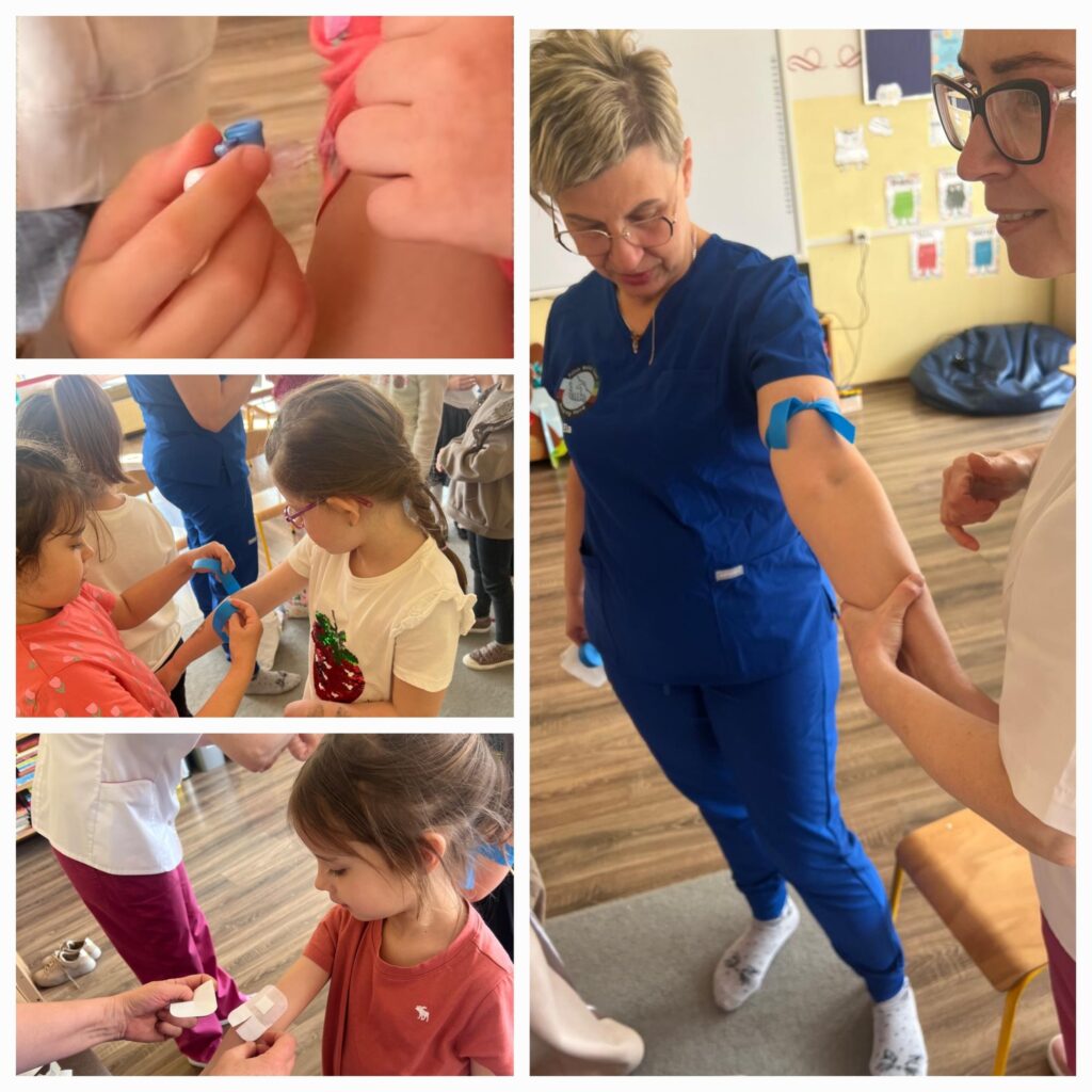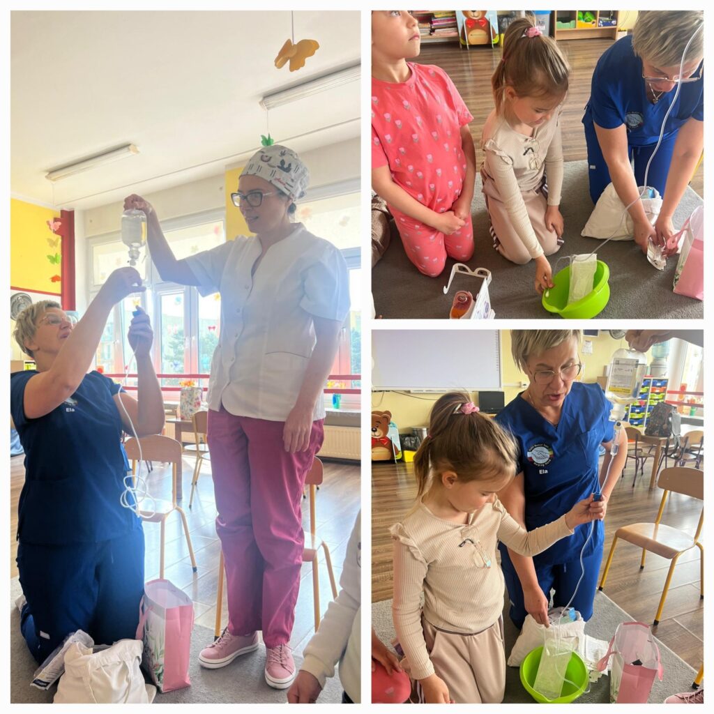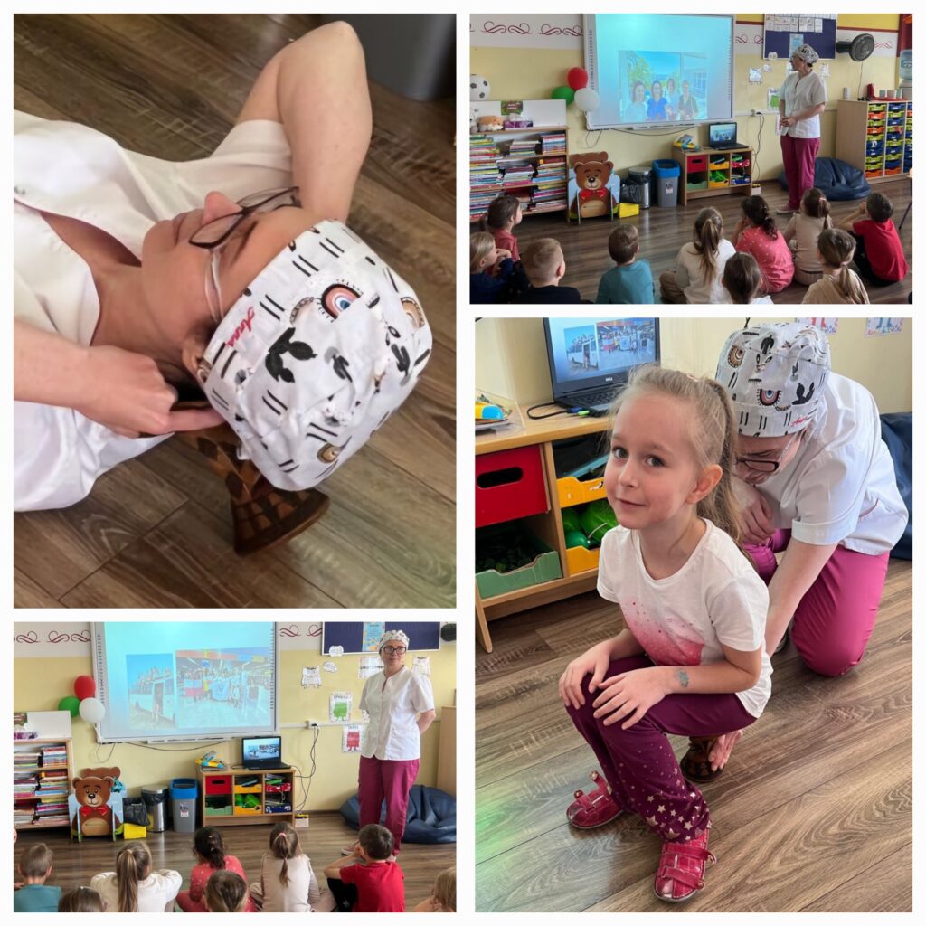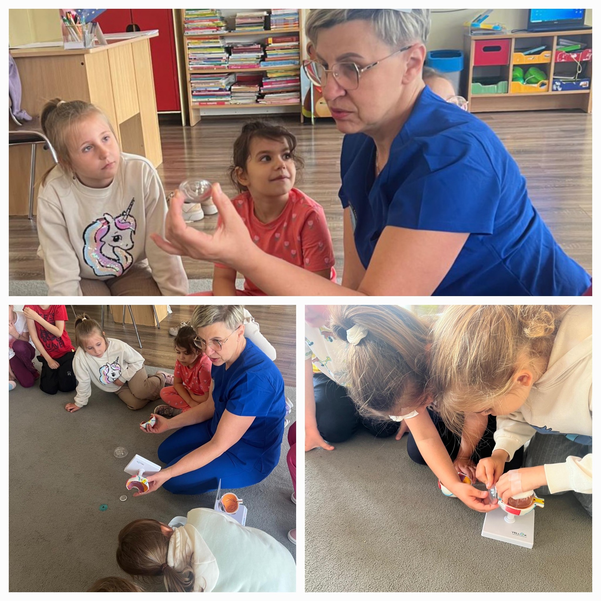 16 maja 2025r. na zajęciach w grupie Sówki gościliśmy – Panią Elżbietę, babcię Jasia oraz Panią Annę, które na co dzień pracują jako pielęgniarki na oddziale okulistycznym włocławskiego szpitala.