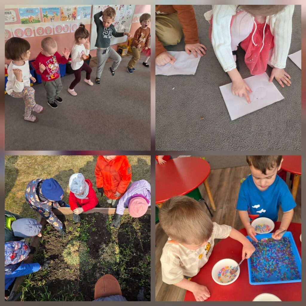 Tydzień mózgu w grupie Kotki. Ruch na powietrzu, gimnastyka, zabawy sensoryczne oraz z przekraczaniem linii środkowej ciała. Czyli wszystko, co usprawnia funkcjonowania naszego mózgu.