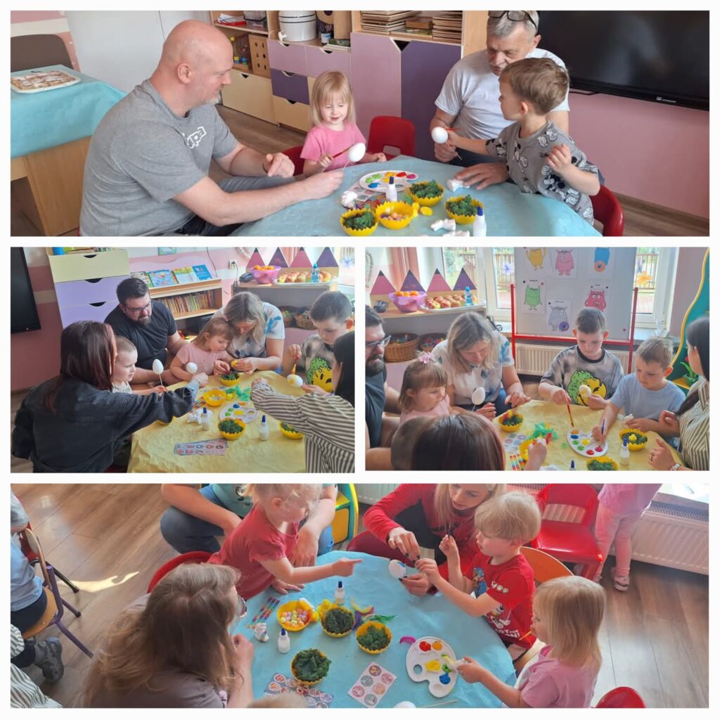 W grupie Kotki odbyły się warsztaty wielkanocne, w których wzięły udział dzieci wraz z rodzicami. Przedszkolaki z przygotowanych materiałów, wykonały piękne wielkanocne ozdoby. Warsztaty były doskonałą okazją miłego spędzenia czasu oraz utrwalenia wiedzy na temat tradycji Świąt Wielkanocnych. Zajęcia przebiegały w miłej i serdecznej atmosferze. Serdecznie dziękujemy za wspólnie spędzony czas