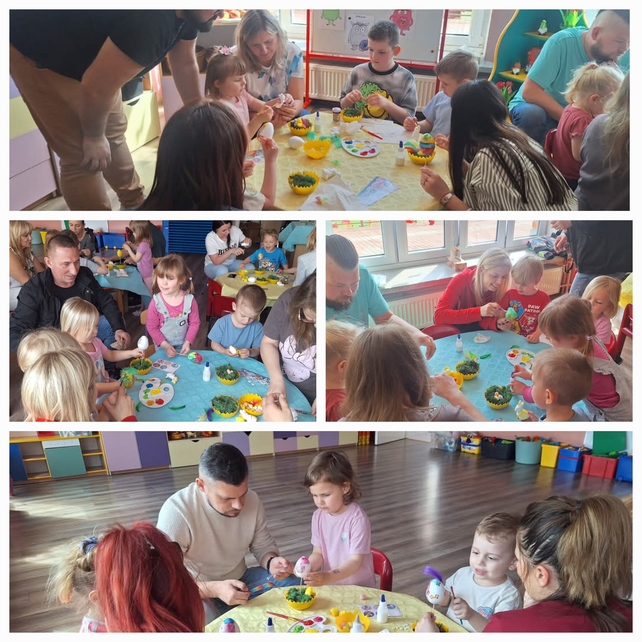 W grupie Kotki odbyły się warsztaty wielkanocne, w których wzięły udział dzieci wraz z rodzicami. Przedszkolaki z przygotowanych materiałów, wykonały piękne wielkanocne ozdoby. Warsztaty były doskonałą okazją miłego spędzenia czasu oraz utrwalenia wiedzy na temat tradycji Świąt Wielkanocnych. Zajęcia przebiegały w miłej i serdecznej atmosferze. Serdecznie dziękujemy za wspólnie spędzony czas