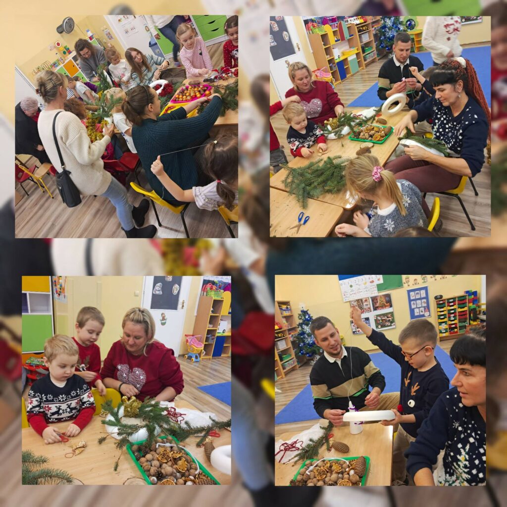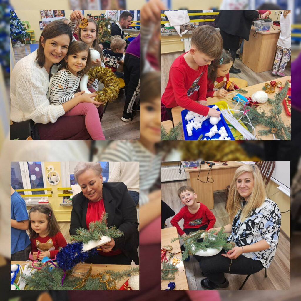 Podczas świątecznych warsztatów w grupie Jeżyki wspólnie z Rodzicami tworzyliśmy piękne, pachnące wieńce bożonarodzeniowe. Było dużo uśmiechu, radości.
