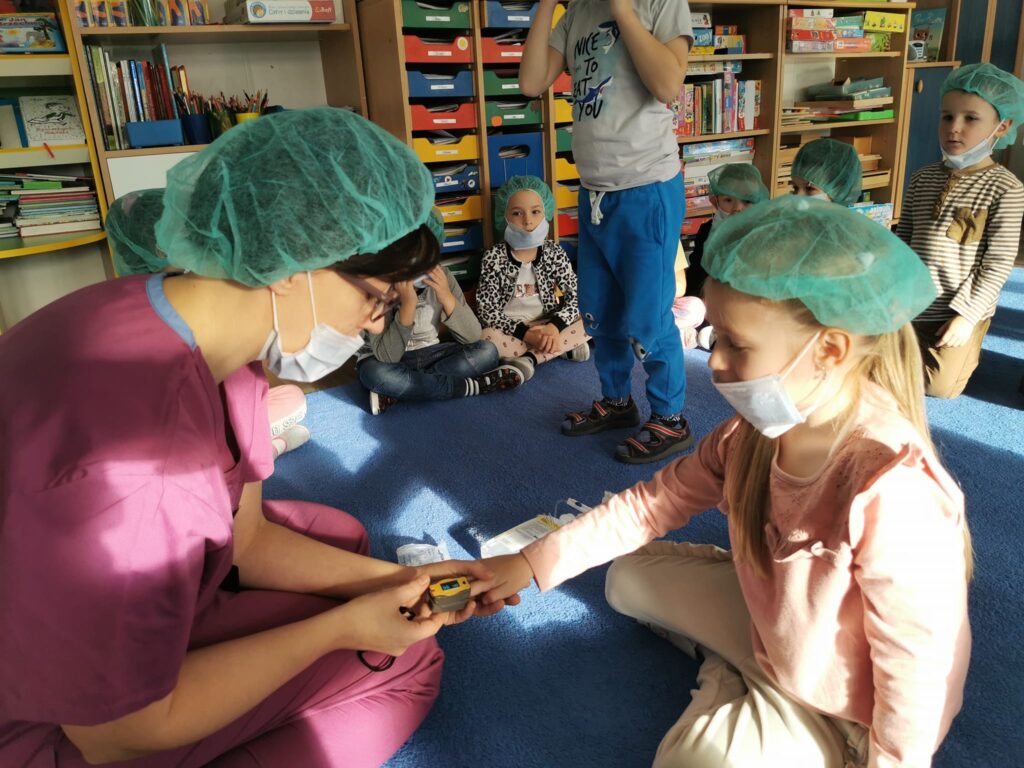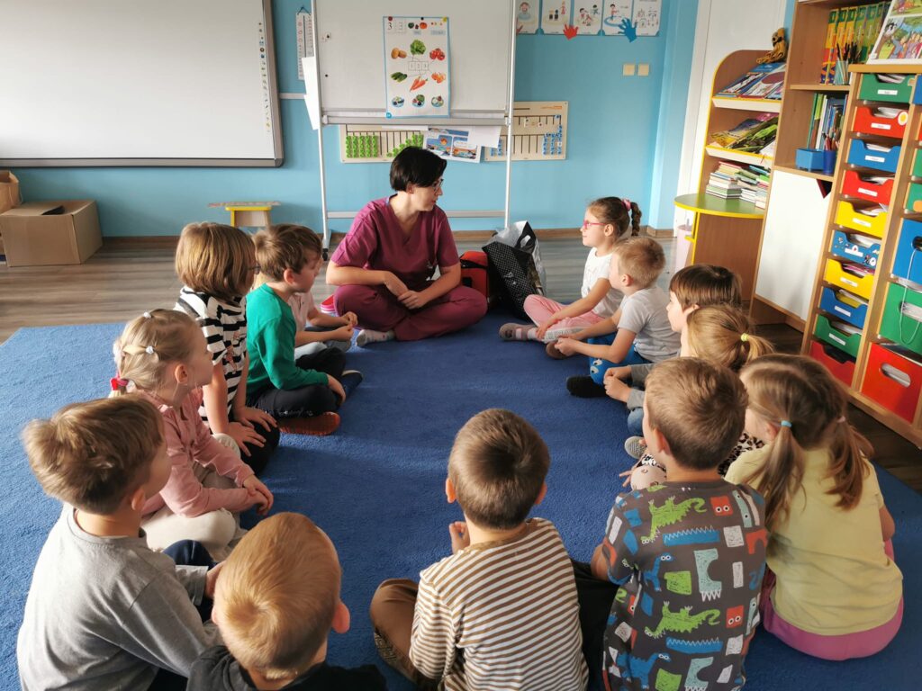 24 listopada grupa starsza integracyjna gościła Panią Katarzynę Jędrusiak, mamę naszej wychowanki – pielęgniarkę ze Szpitala Wojewódzkiego we Włocławku.
