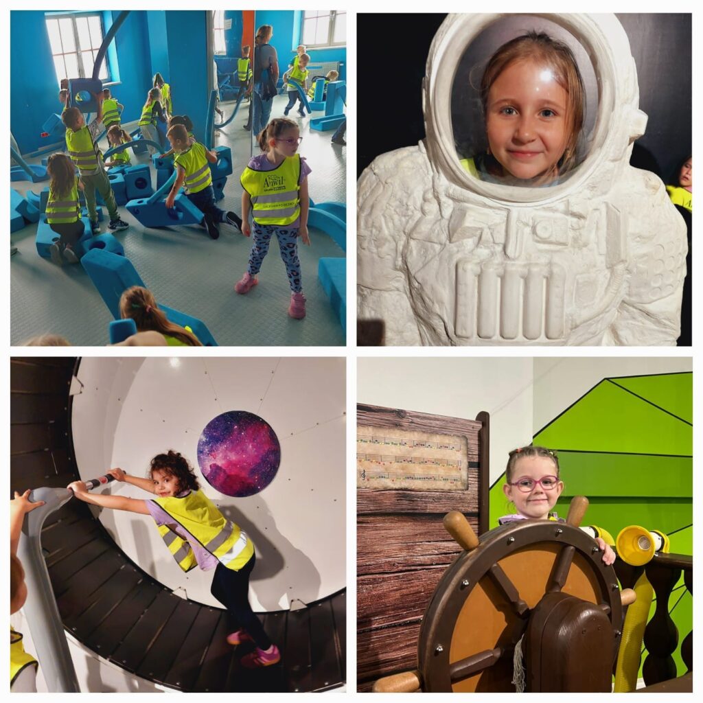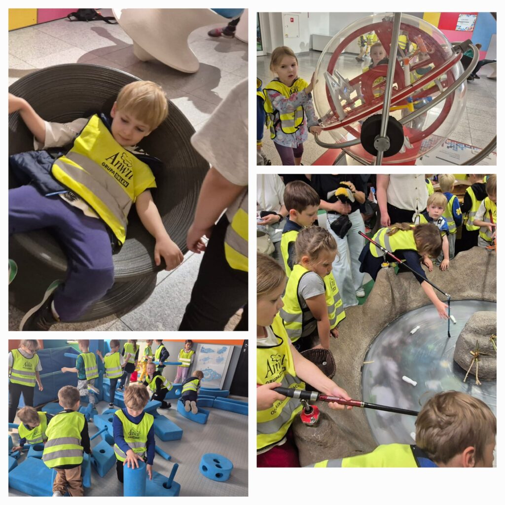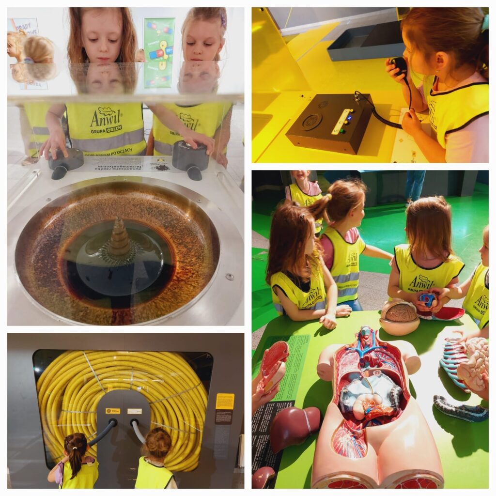 Wycieczka dzieci z grupy Dinusie i Sówki do Młyna Wiedzy w Toruniu.
