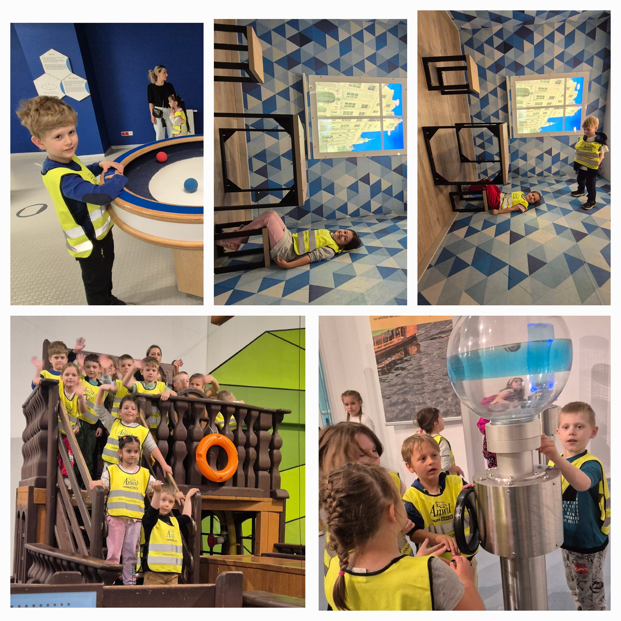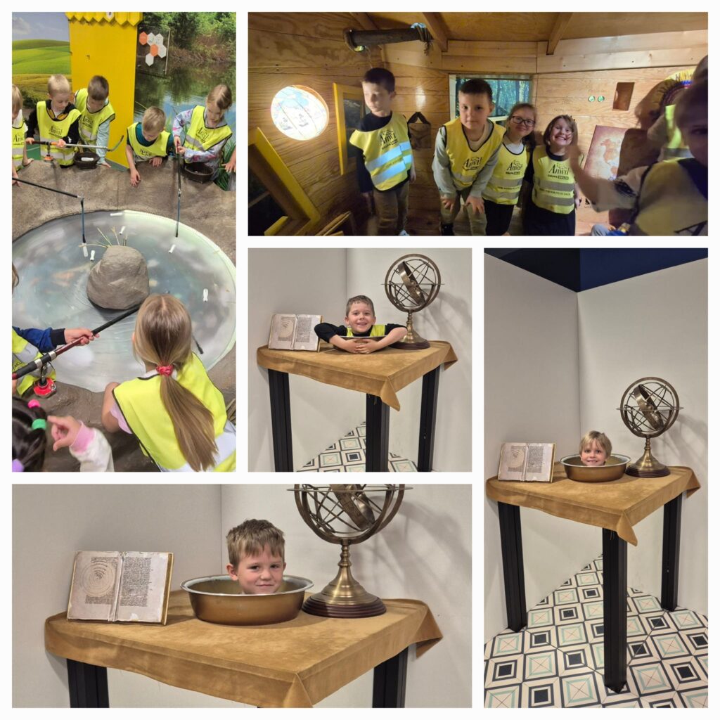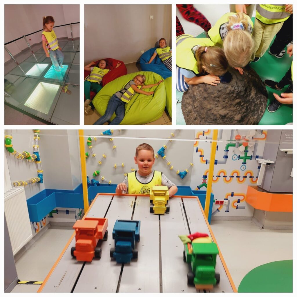 Wycieczka dzieci z grupy Dinusie i Sówki do Młyna Wiedzy w Toruniu.