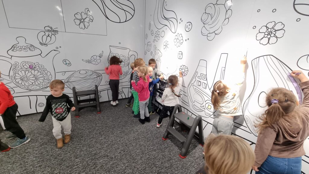Dzieci z grupy młodszej integracyjnej odwiedziły zupełnie nowe i wyjątkowe miejsce w naszym mieście- Interaktywne Centrum Fajansu-Skansen Fajansu. Jest to nowoczesna i multimedialna placówka, która pozwala odkrywać historię włocławskiego Fajansu wieloma zmysłami. Taka forma zdobywania wiedzy bardzo podobała się naszym dzieciom.