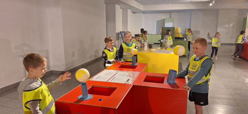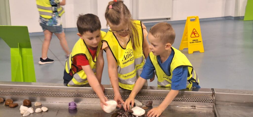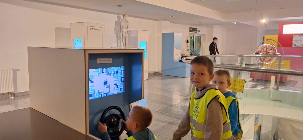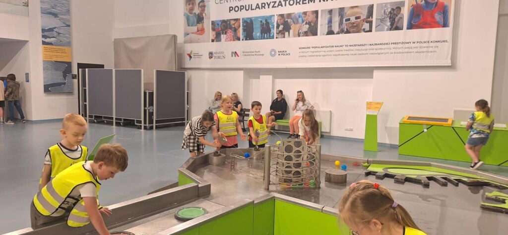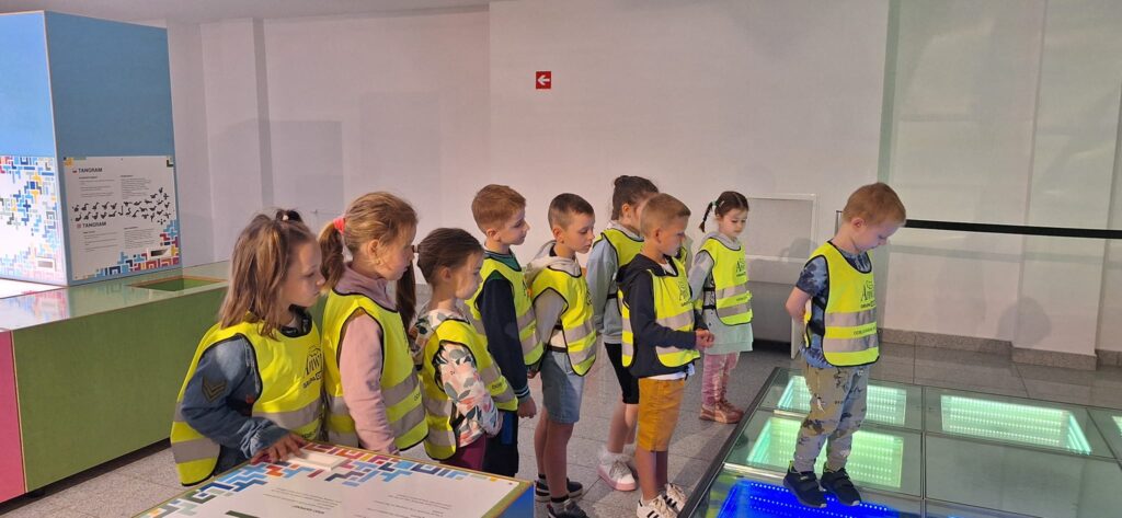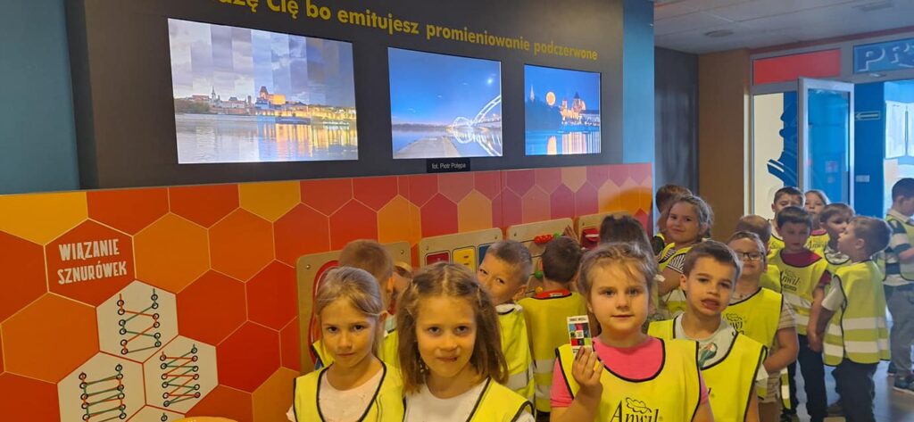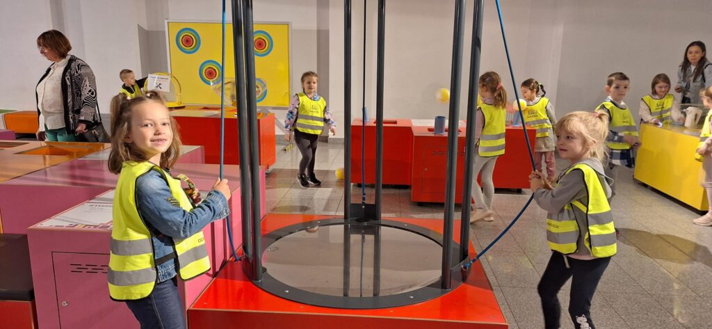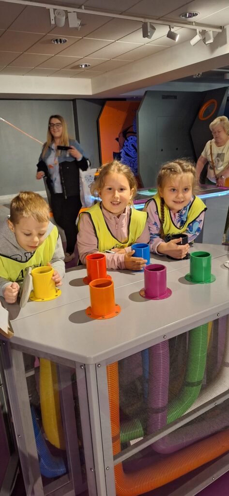 Dzieci z grupy 6 latków z okazji nadchodzącego Dnia Dziecka wzięły udział w wycieczce do Centrum Nowoczesności Młyn Wiedzy w Toruniu. Zwiedzanie wystaw w Młynie Wiedzy było czasem super zabawy i nauki. Uśmiech nie schodzi z buzi naszych dzieciaków