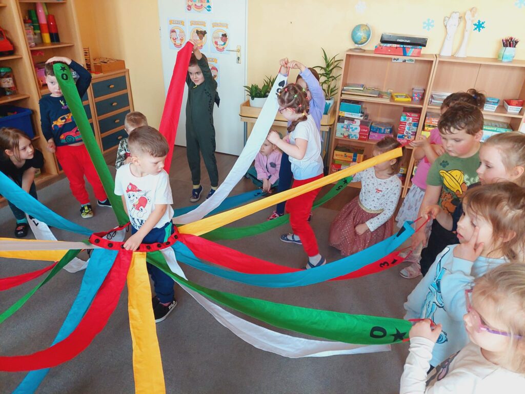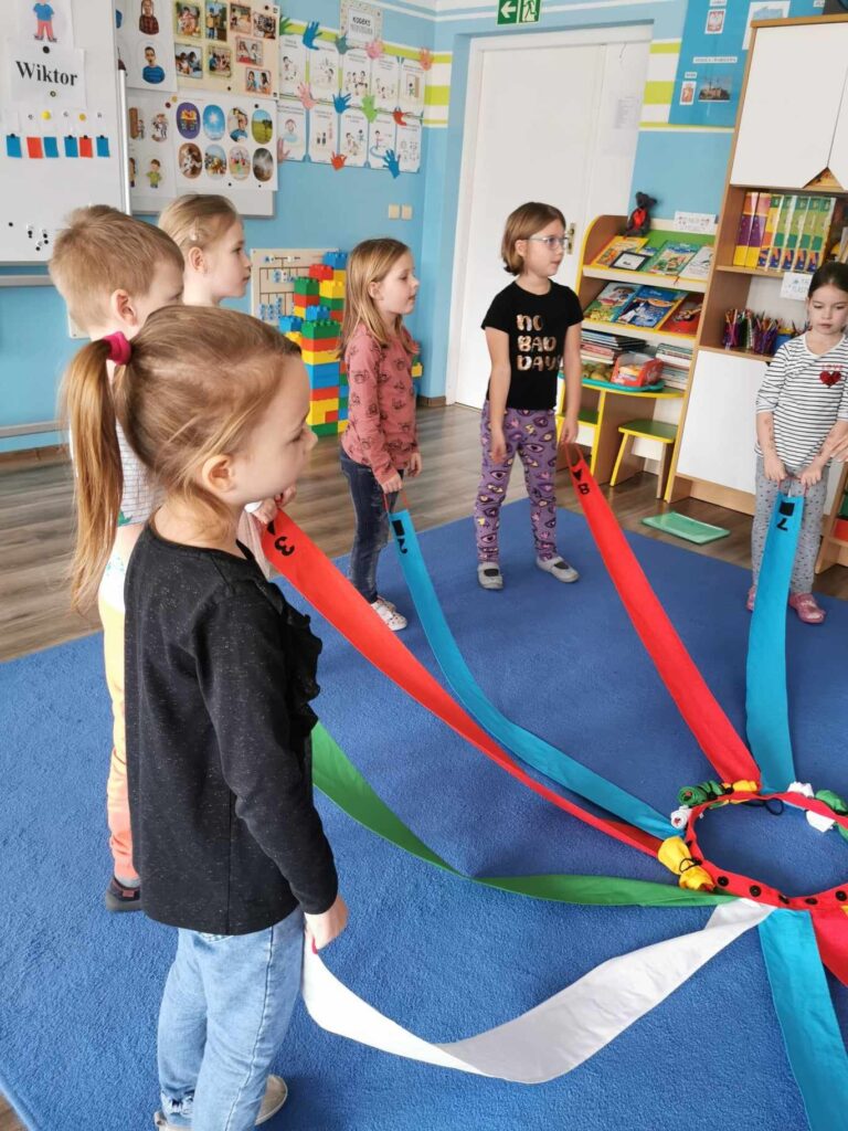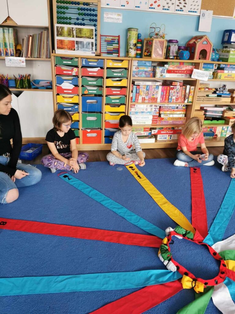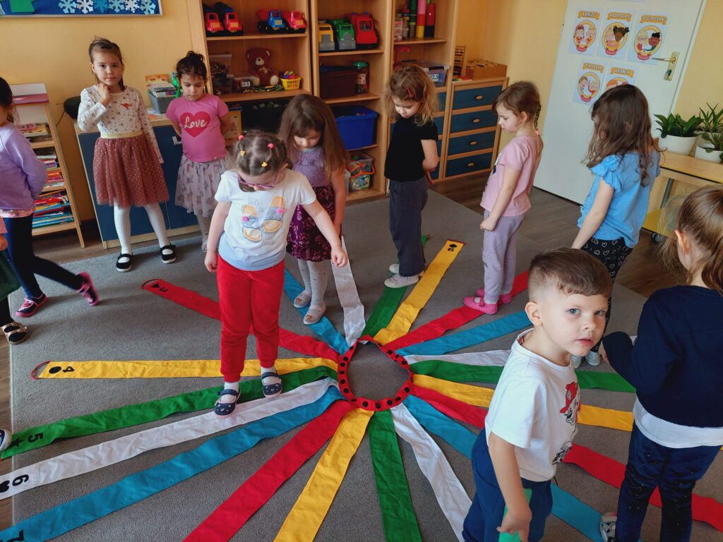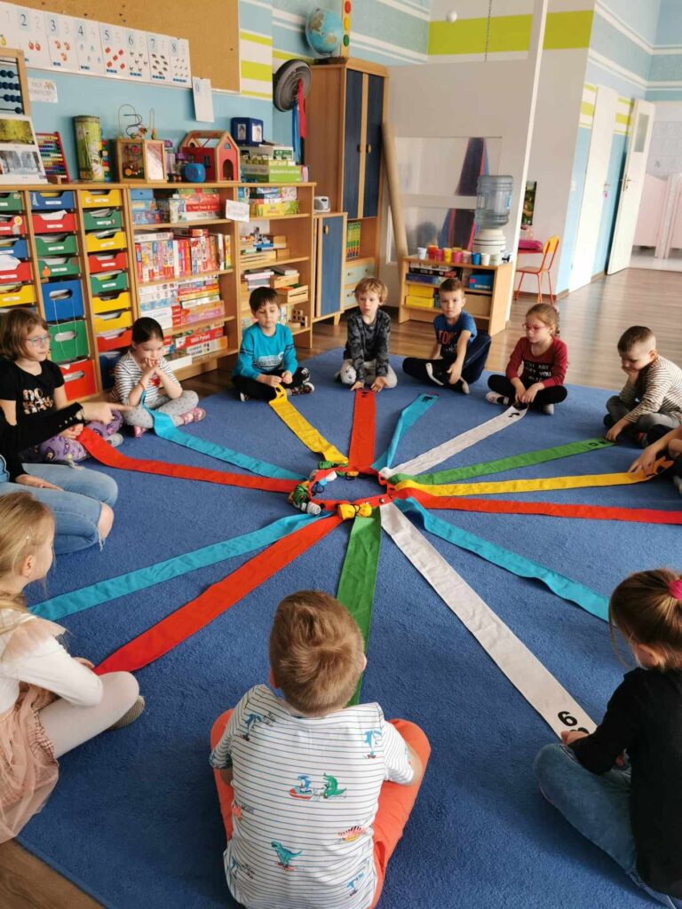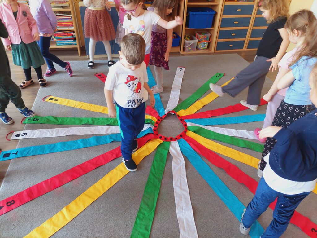 Zabawy z wiatrakiem matematycznym w 5latkach, 6latkach i II integracyjnej w ramach projektu „Oblicza matematyki”.