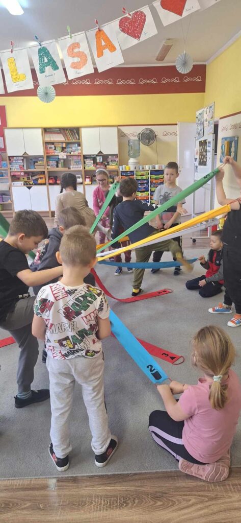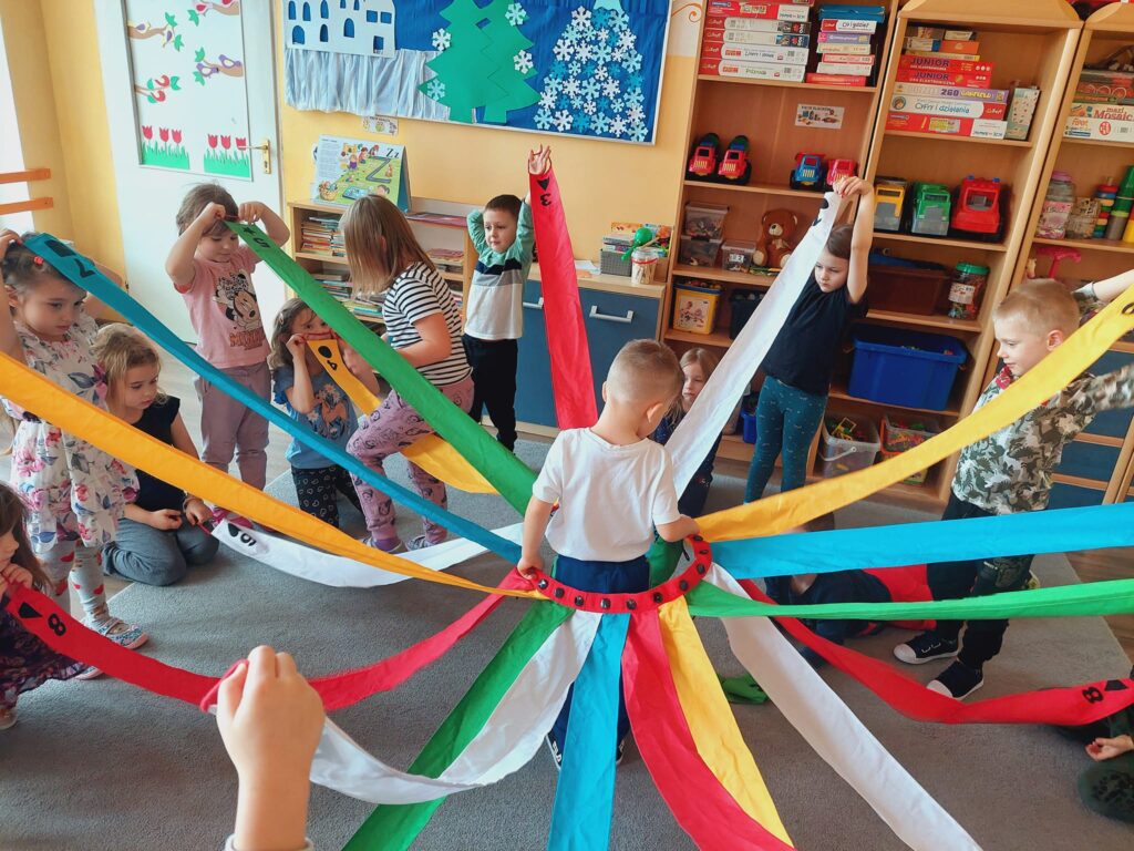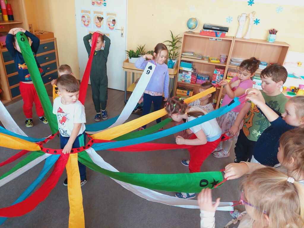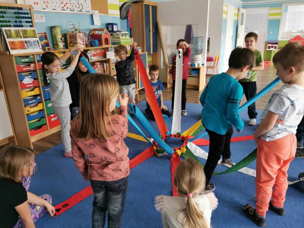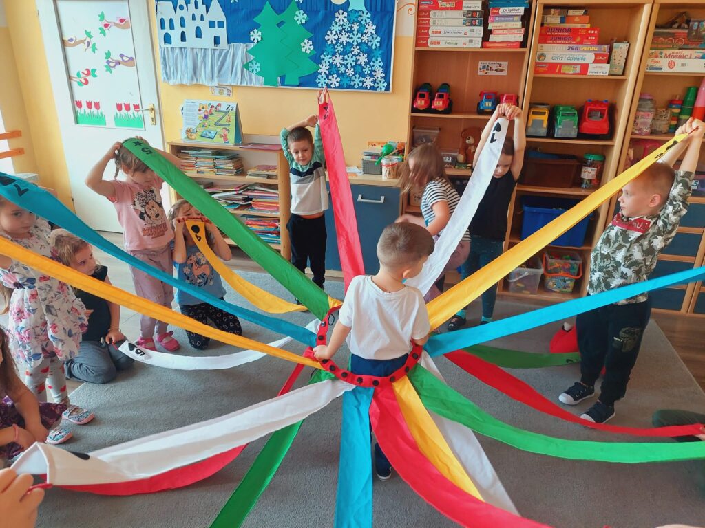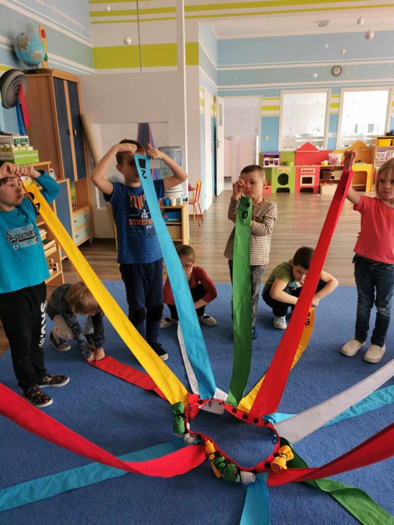 Zabawy z wiatrakiem matematycznym w 5latkach, 6latkach i II integracyjnej w ramach projektu „Oblicza matematyki”.