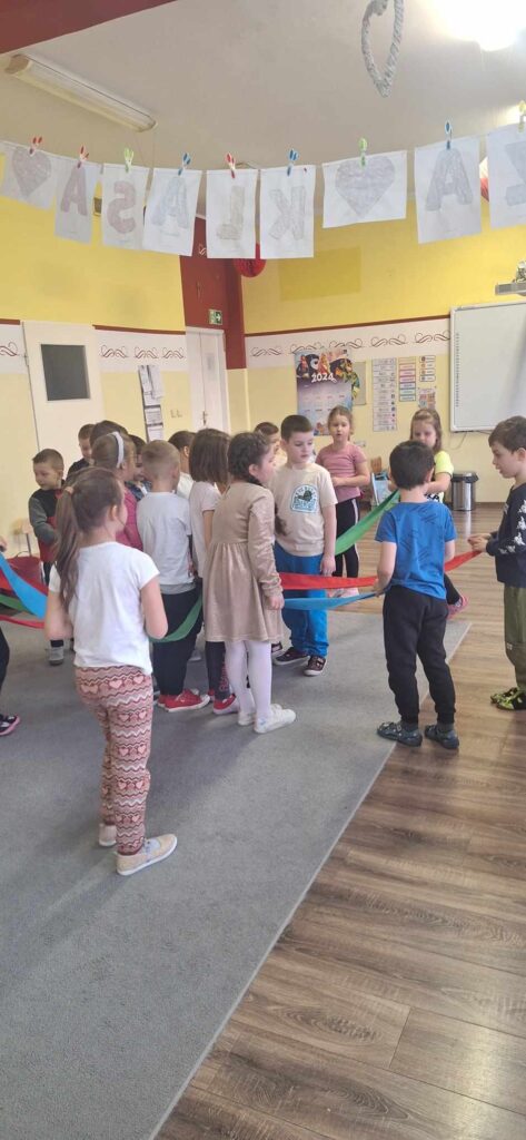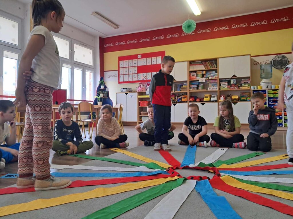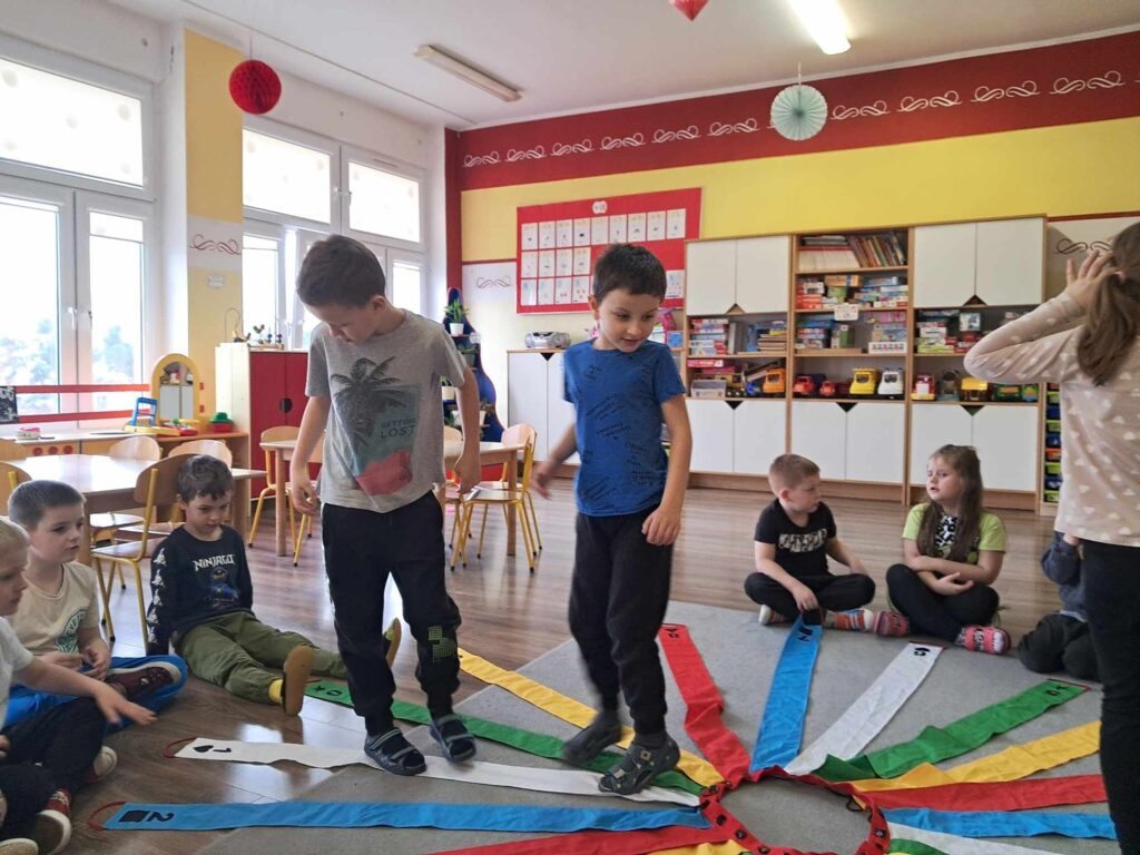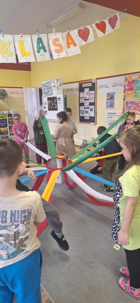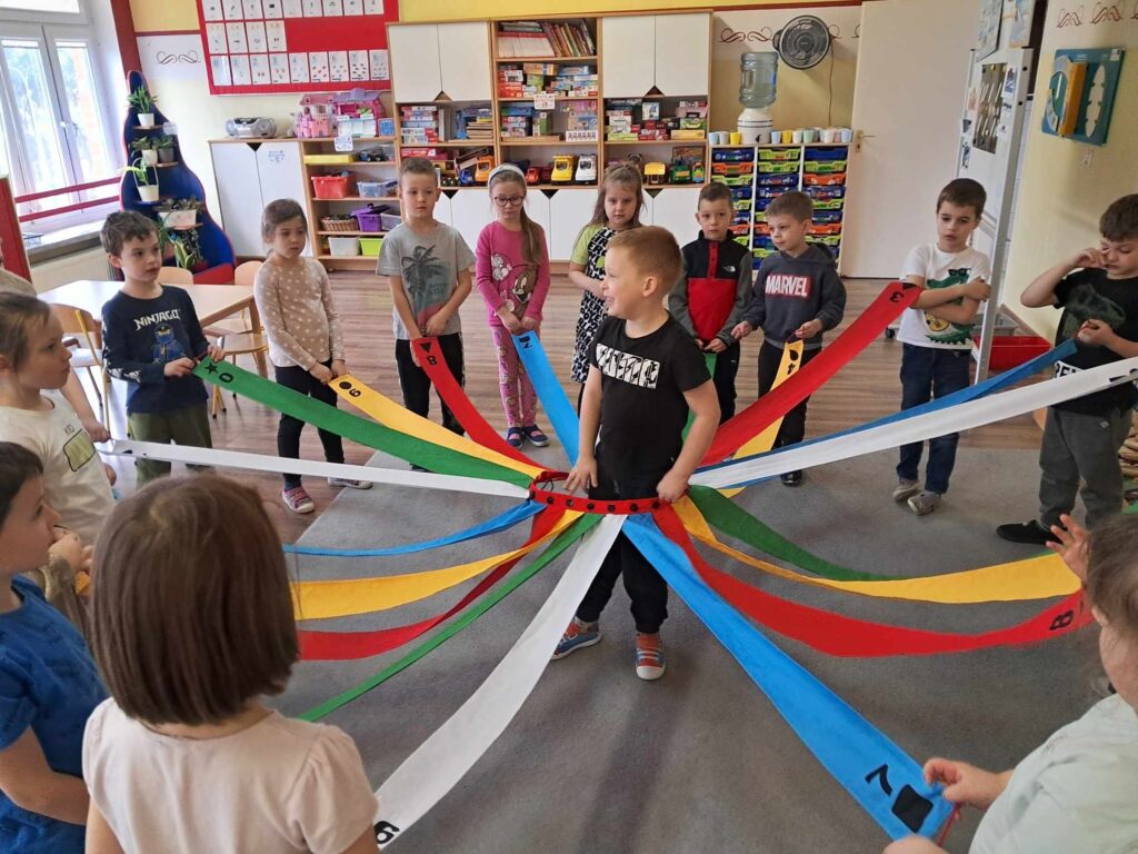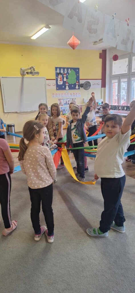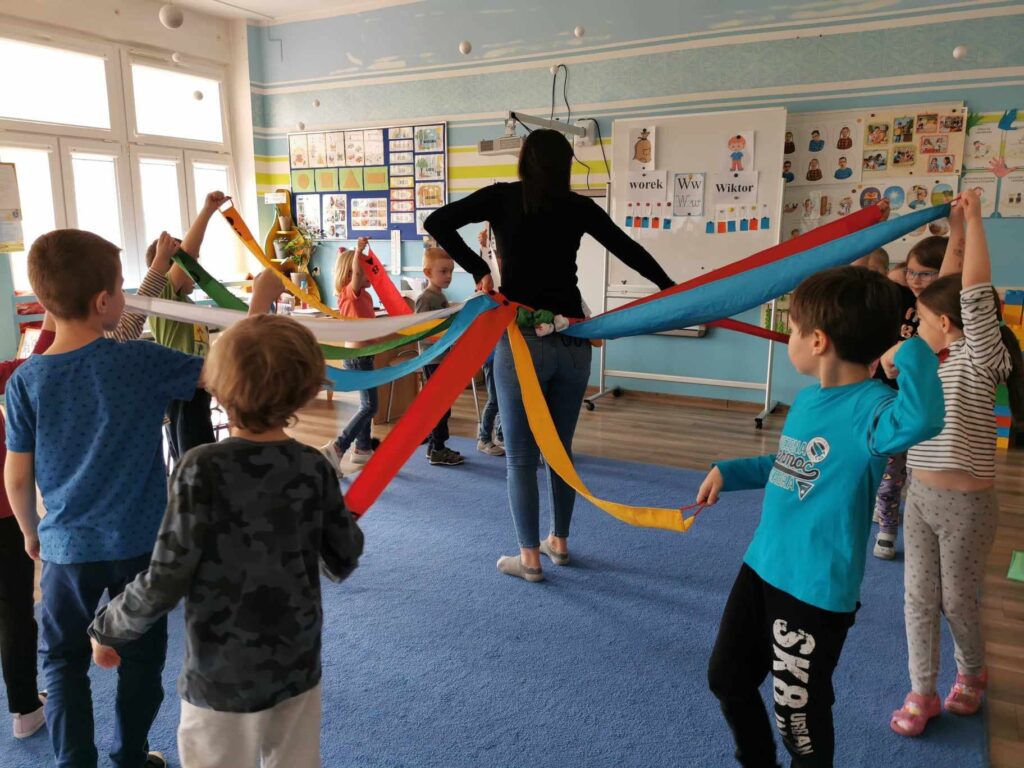 Zabawy z wiatrakiem matematycznym w 5latkach, 6latkach i II integracyjnej w ramach projektu „Oblicza matematyki”.